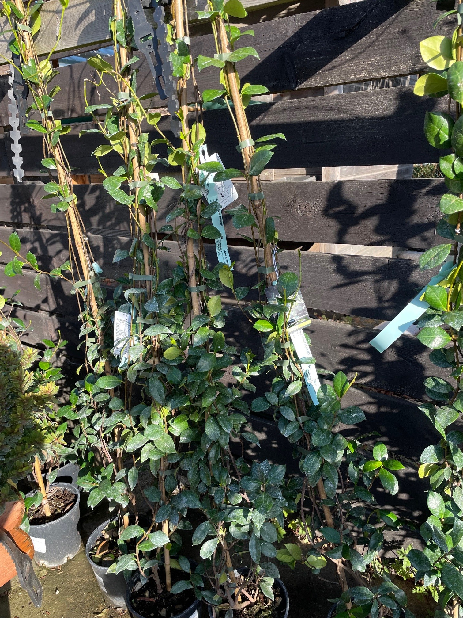 Also known as Evergreen Jasmine this is a attractive climber with rich, dark green leaves which turn bronze in winter. Clusters of highly fragrant, pure white flowers from mid- to late summer.
